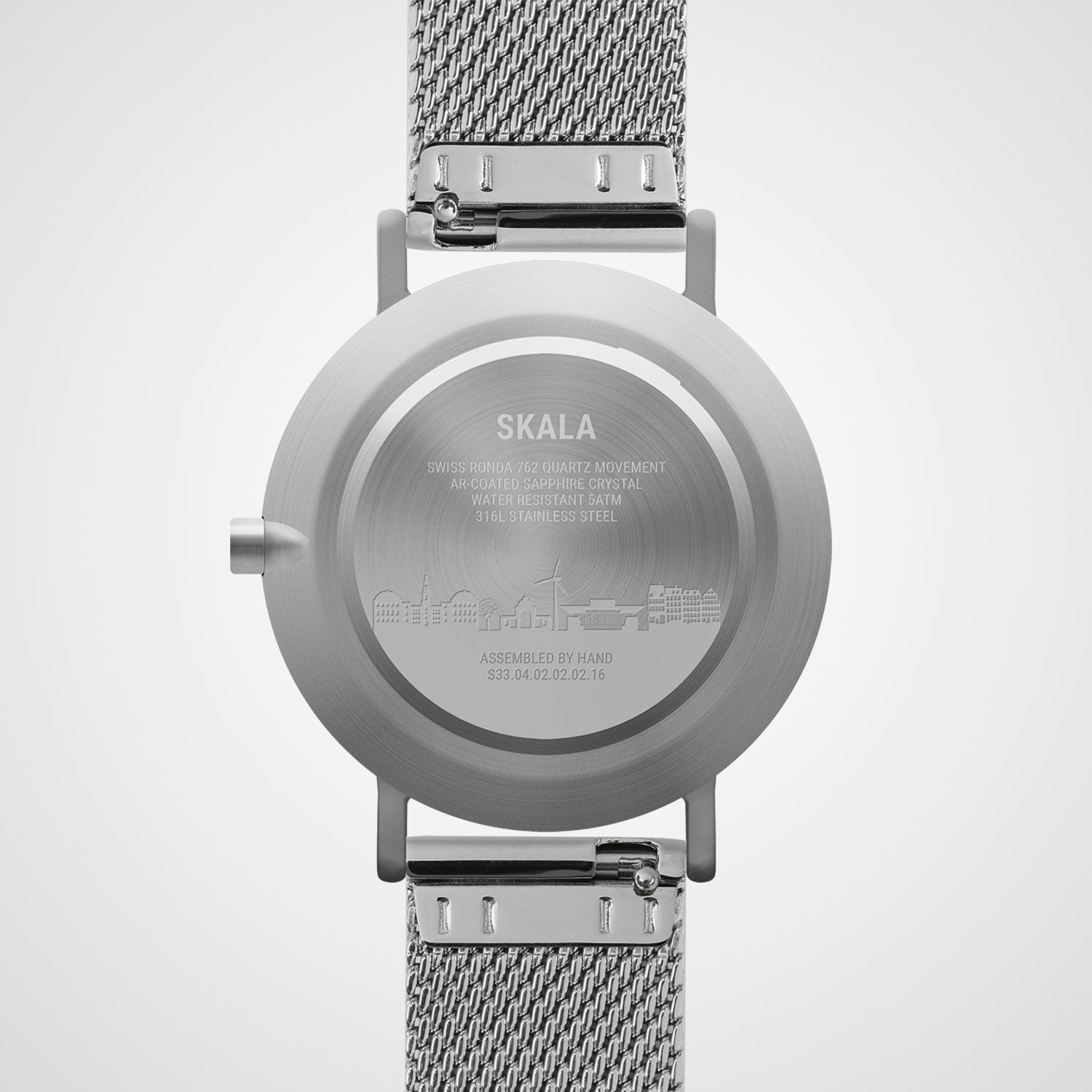 Skala is hand-assembled around a Swiss movement, which is covered by a lifetime warranty.